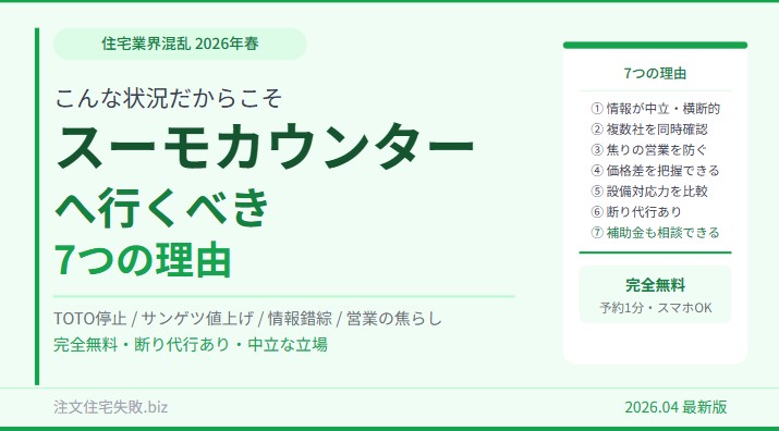 住宅設備が止まり建材が値上がりしている今こそ スーモカウンターへ行くべき7つの理由【2026年4月版】